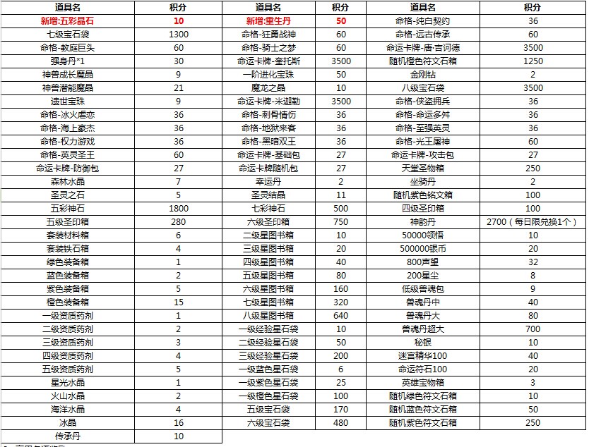2. 其他稀有道具和“米迦勒”都需要集齐100个天堂圣物后才能兑换获得