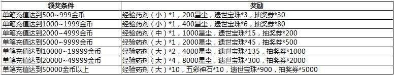 1.每单笔充值一定额度金币只可获得对应档奖励一次,无法兼得其他奖励。