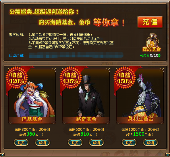 1. 活动期间,玩家可花费花费金币,购买基金;