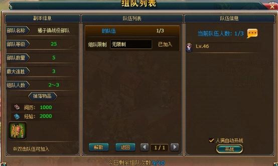 创建队伍后,玩家可以设定加入的条件,并等待队员的加入,“组队列表”左边会显示队伍的人数以及队伍的信息,队伍人数后面那黄色的小图标,点击后可以在世界频道召唤队友快速加入。人满即可开战!