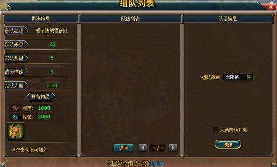大家可以通过自己创建队伍或者加入别人的队伍经行挑战,队伍是由2-3名玩家组成,奖励在“组队列表”的左下角会有说明。