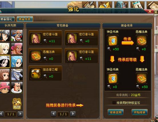 热血海贼王这个游戏里有一个叫做装备传承的系统