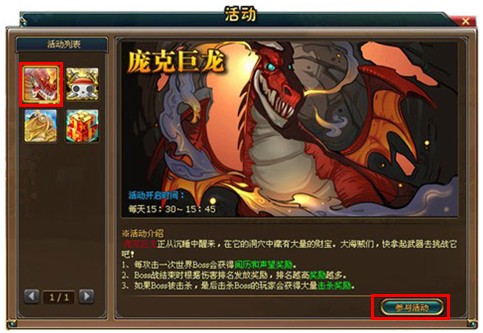 选择当前开启的世界BOSS活动,点击“参与活动”进入活动界面