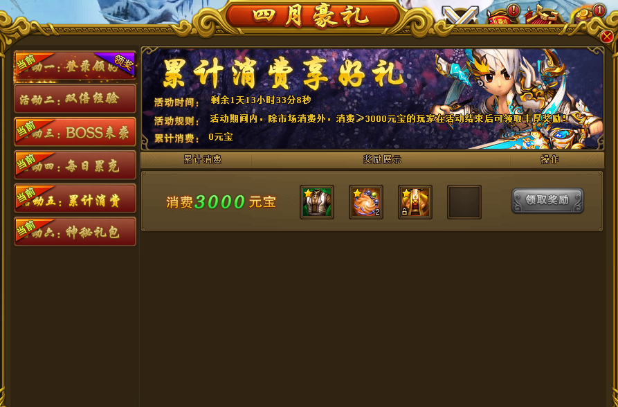 活动规则:活动期间内,累计充值金额满足要求即可对应奖励