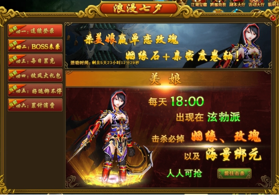 活动规则:活动期间,每晚18:00,美娘BOSS都会出现在泫勃派地图内,玩家击杀世界BOSS即可掉落海量绑元,橙色装备,以及稀有珍惜道具。