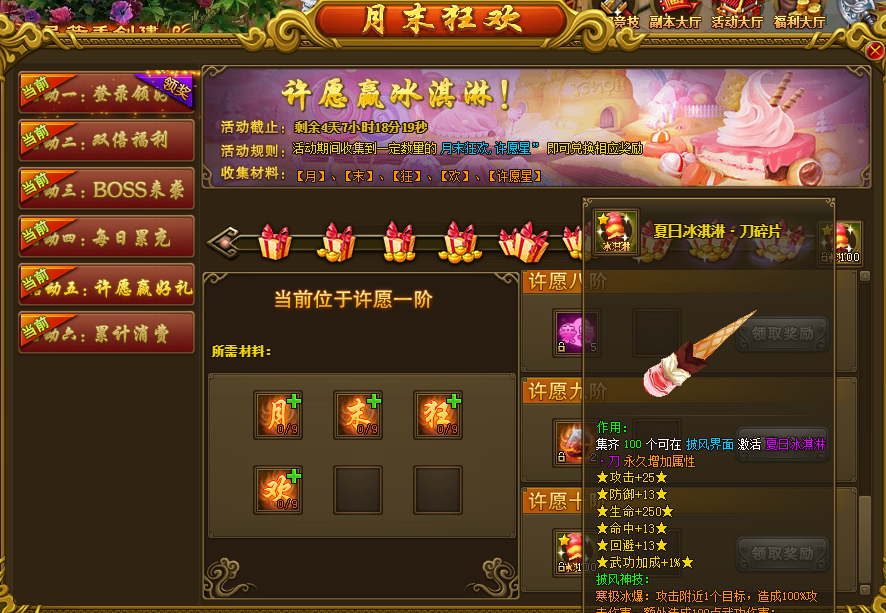 5. 许愿5层:冰淇淋武器限时卡1天;