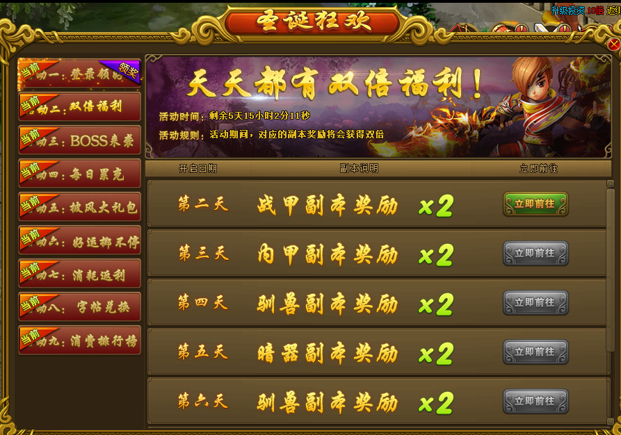 活动规则:活动期间,对应副本奖励或者杀怪经验会获得双倍奖励;