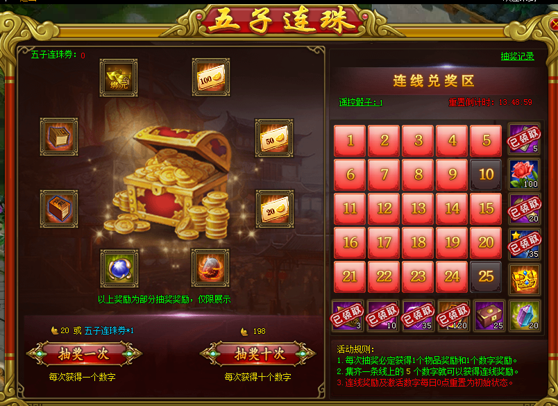 3.连线奖励及激活数字每日0点重置为初始状态。