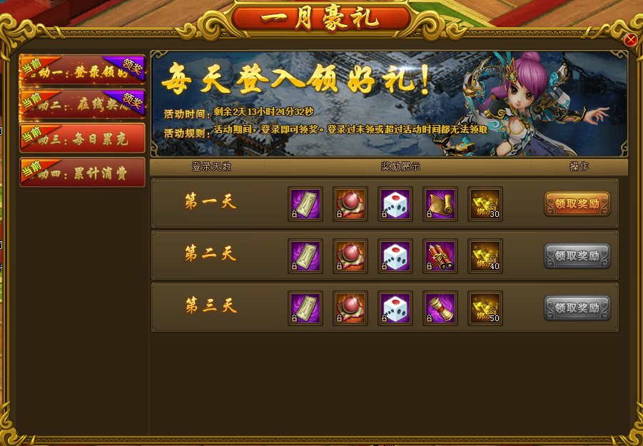活动规则:活动期间登录即可领取相应奖励(全部绑定);