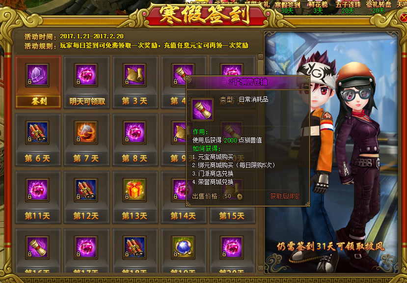 《热血江湖传》“寒假签到”