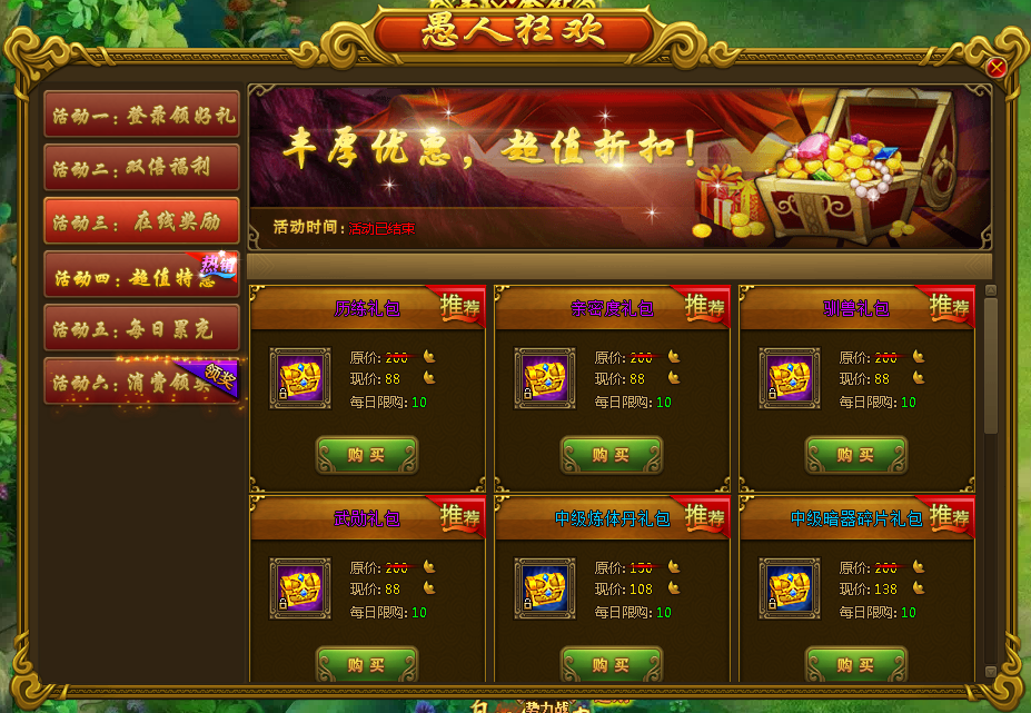 活动规则:活动期间内,限时优惠促销回馈,珍贵道具抢不停。