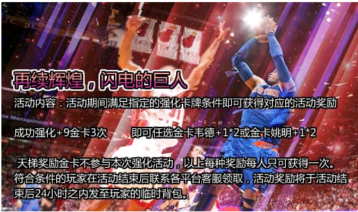 成功强化+9金卡3次 即可任选金卡韦德+1*2或金卡姚明+1*2