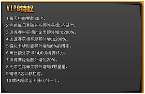 本次更新之后,VIP最高等级调至8级,VIP用户可以获得更多奖励以及便捷的服务!满足更高VIP等级的玩家只需充值任意金额,即可更新自己的VIP等级!