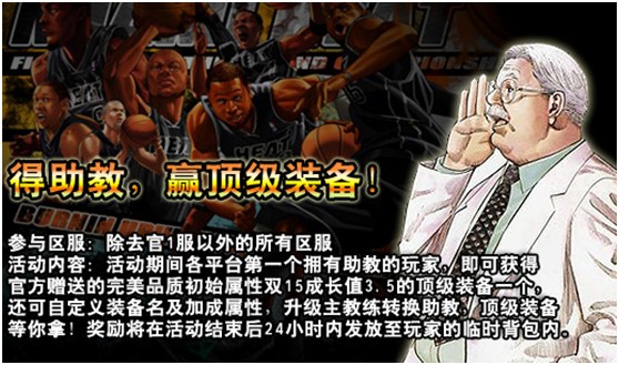活动内容:活动期间各平台第一个拥有助教的玩家,即可获得官方赠送的完美品质初始属性双15成长值3.5的顶级装备一个,还可自定义装备名及加成属性,升级主教练转换助教,顶级装备等你拿!奖励将在活动结束后24小时内发放至玩家的临时背包内。