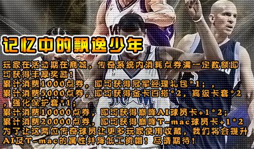 累计消费20000点券,即可获得巅峰T-mac球员卡+1*2