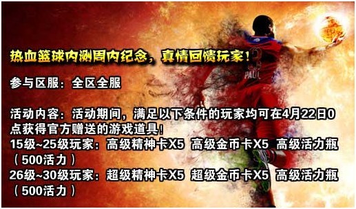 一路有你,感谢你一直以来对热血篮球的支持和热爱!在此我们为亲爱的玩家准备了一些小的礼物,让大家能更好的强化自己的球队,与兄弟们一同享受精彩篮球盛宴!