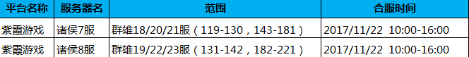 正式合服时间:11月22日10:00