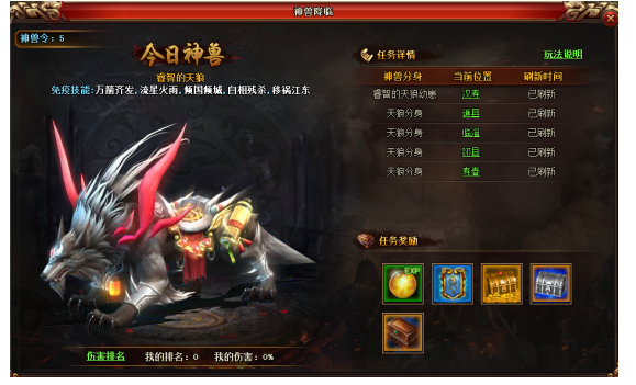 4.挑战洛阳神兽需要消耗神兽令,神兽令每日清理。