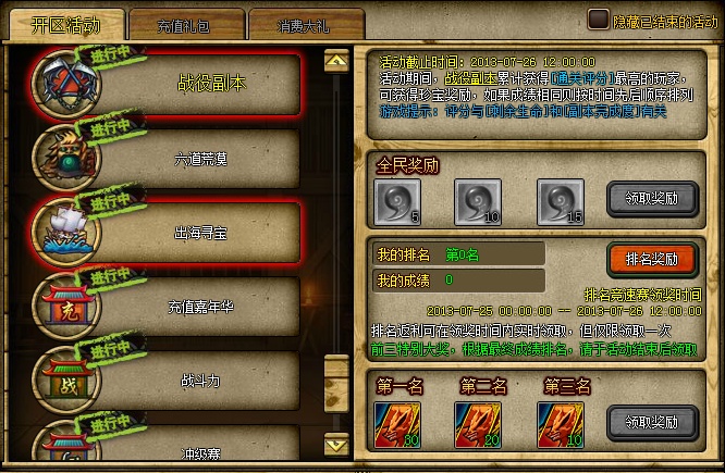 活动说明:战斗力最高的玩家,可获得珍宝奖励
