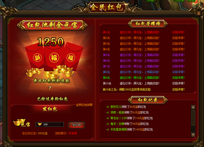 3系统会将玩家发送的红包的部分数额放到红包奖池里面去。其他玩家通过抢红包也可以抢到。