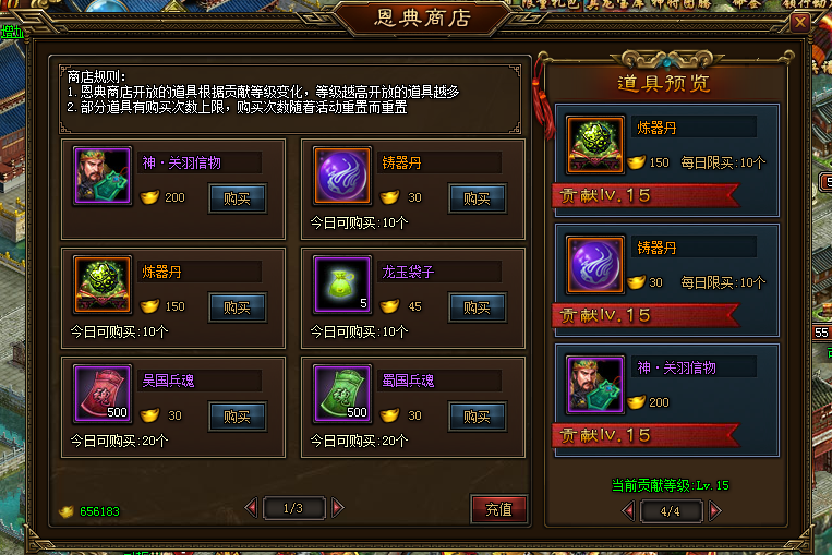 3) 当前贡献等级对应的贡献值可通过元宝购买;