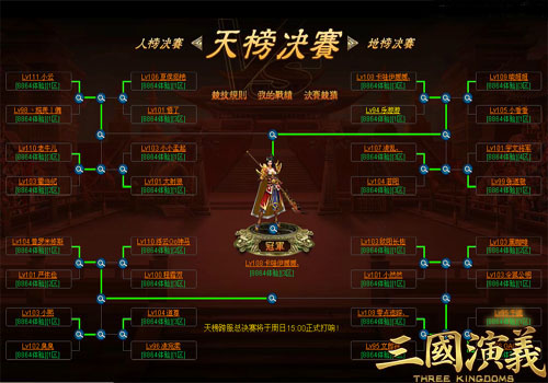 凡盖世豪杰,当胸怀天下,修绝世武艺,提三尺剑邀战群雄,成就不世之功名。《三国演义》跨服大战开启至今,从积分赛的群雄争霸,到排名赛的层层筛选,无数的英雄豪杰们为了胜利的荣耀和信念而抛头颅、撒热血,鏖战沙场气吞山河。如今,天地人三榜中通过了重重考验的32位绝顶高手,将于今日正式迈入跨服总决赛的殿堂。为了总冠军的终极荣耀,他们将展开史诗般地巅峰对决。利刃出鞘,光耀九州!为了最后的胜利,前进!