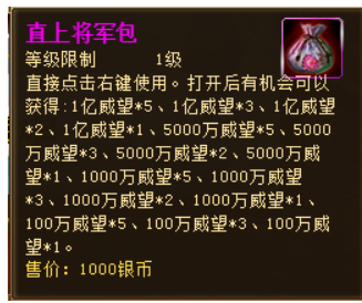 1000 | 500金币,镇魔资质丹*10,1级隐龙珠*50,五级宝石袋*3,天命宝盒*20 |