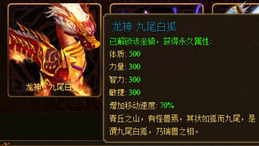 30000 | 30000金币,镇魔资质丹*400,1级隐龙珠*3000,11级宝石奇迹箱*2,龙神·九尾白狐 |
