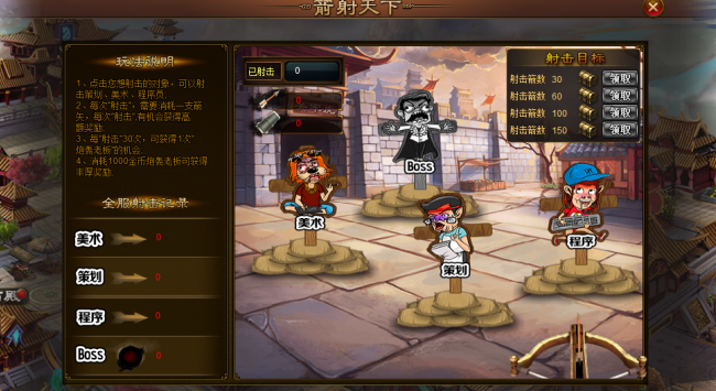 活动内容:活动期间射击Boss、美术、策划、程序均可获得丰厚的奖励,已下调射击Boss所需金币数量。