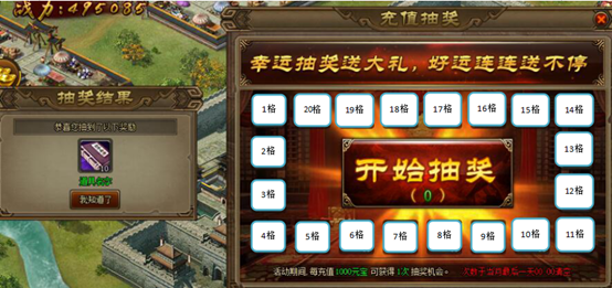【活动内容】活动期间,各位主公每天有一次免费抽奖次数。免费及元宝抽将每次可获得10积分,计算入积分排行帮,参与获得积分排行奖励,且每达到150积分可额外获得1次免费抽将的机会。(活动参考UI,具体以游戏中为主)
