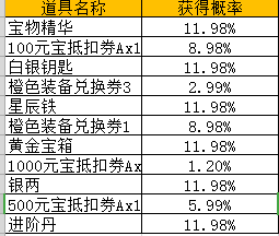 每日充值1000元 | 橙色套装宝箱x1 | 装备进化石x100 | 宝物精华x 1000 | 银两x 200万 |