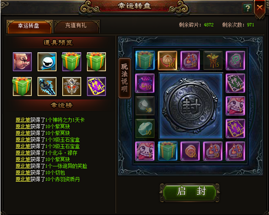 消耗2个“幸运碎片”即可“启封”转盘物品