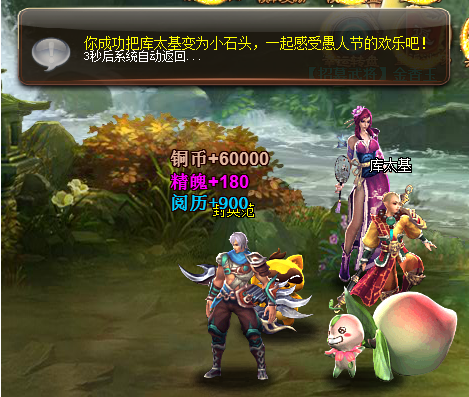 将其他玩家成功变身后,将会获得一定数量的铜钱、阅历、精魄