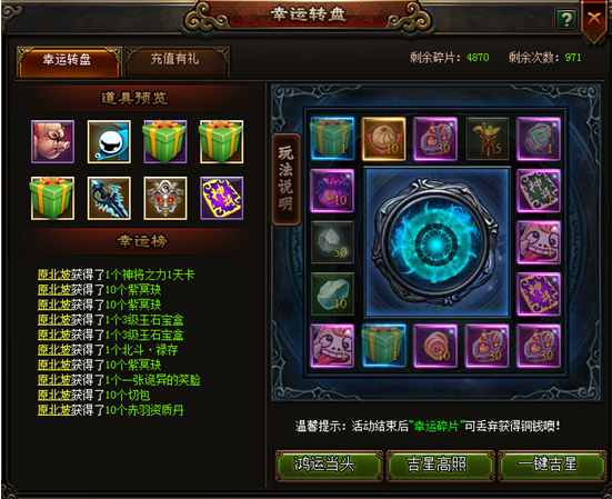 2、 如果转盘上有你心仪的物品,建议选择“吉星高照”,你将有更大机会获得它