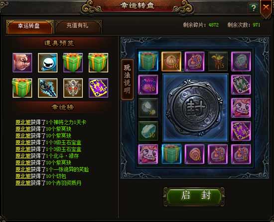 奖励领取完毕后,转盘上的物品重置,可重新启封并获得道具