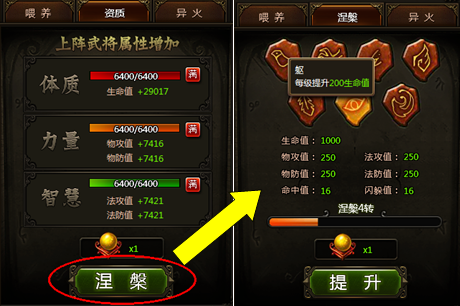 1、 当赤羽资质均达到满值后,可以在赤羽资质页面切换至“涅槃”