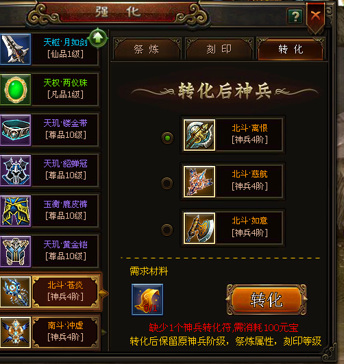 新神兵转化为其他新神兵:
