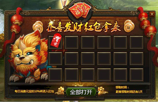 2、暑期活动:红包拿来开放,玩家每天消费元宝的10%将进入红包,在8月10日当天可以一次性领取这些元宝红包!(活动时间:7月23日维护后至8月9日23:59:59)