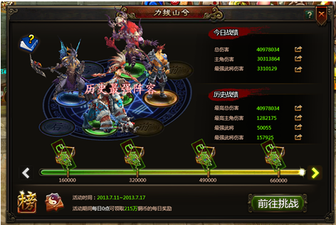 “力拔山兮”是神将三国的一个单人PVE玩法,玩家在玩法中通过挑战BOSS达成更高的伤害目标,从而获得大量奖励。