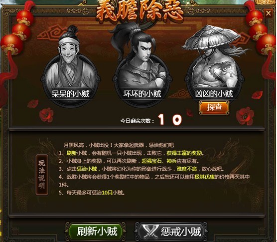 4、 每日最多惩戒10个小贼