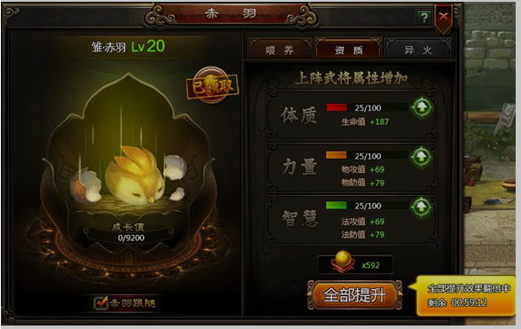 赤羽元宝培养爽翻倍!活动期间,赤羽元宝培养增加属性翻倍,助你赤羽早日展翅高飞!