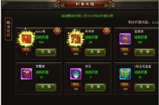 活动期间,元宝消费时1:1返还“积善成福”点,使用积善成福点可以兑换部分道具