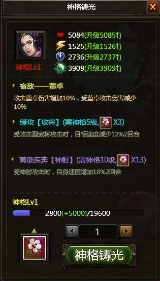 但凡所有升级为神将的武将,均可以进行神格铸光。