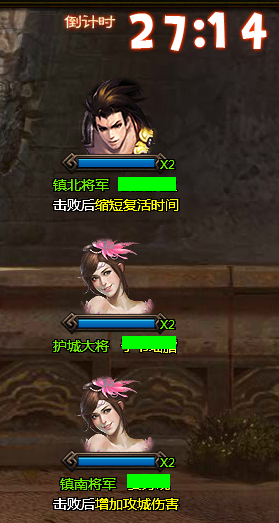 (8) 击败镇北镇南两位大将后,攻城方会有额外的帮助进攻的BUFF。
