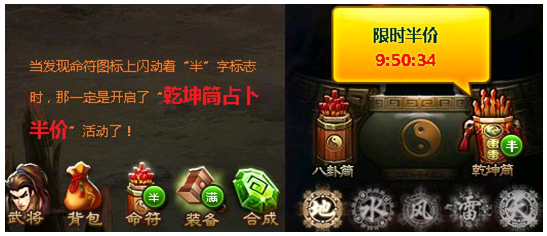 在活动期间内,达到指定等级(55)的玩家使用乾坤筒占卜时,只需消耗50元宝!还等什么,赶快来占卜吧,全身宿命符指日可待!