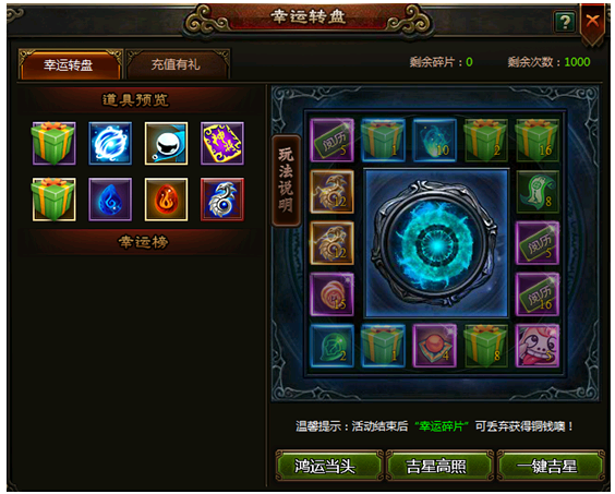2、 如果转盘上有你心仪的物品,建议选择“吉星高照”,你将有更大机会获得它