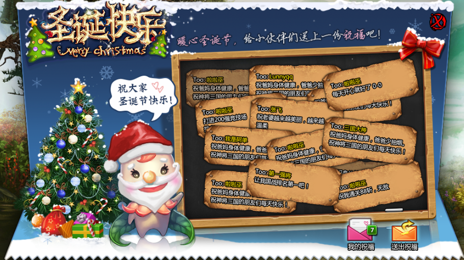 2、每日前5次发送祝福和收到祝福可获得奖励噢!