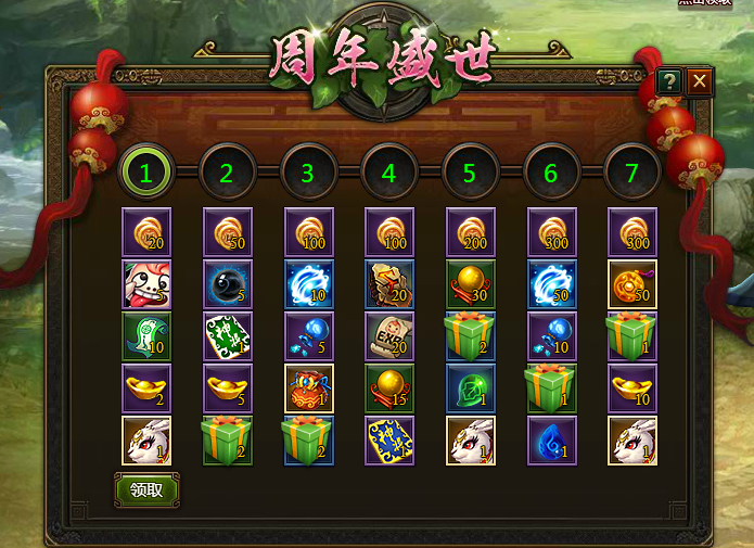 1、 活动期间,每天可领取一次周年庆大礼包