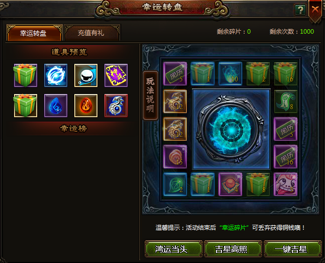 2、 如果转盘上有你心仪的物品,建议选择“吉星高照”,你将有更大机会获得它