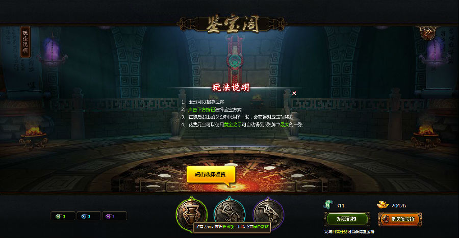 2、选择鉴宝类型,鉴宝共分3种等级,每种鉴宝的类型具体如下表: